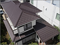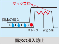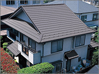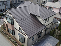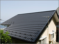 ROOF屋根リフォーム工事 BUSINESS 当社はマックス建材株式会社の 「マックス瓦・マックススター・レクトルーフ」を採用しています。 マックス瓦・マックススター・レクトルーフは、独自の新技術で数々の特許を取得しています。また、高性能を実証するために、過酷な環境を想定した様々な性能試験を行っています。 ホーム » 屋根リフォーム工事 ガルバリウム鋼板 マックス瓦は、その基材にガルバリウム鋼板を使用しています。ガルバリウム鋼板は、アルミ55%と亜鉛43%による合金メッキ鋼板で、耐蝕性・耐久性・耐熱性にも優れています。燃焼試験では、750度で10分間の試験に合格し、国土交通大臣認定の不燃材として登録されています。不燃材認定番号:NM-8697 フッ素樹脂塗装 表面は、あらゆる面で他の塗料より優れ、汚れに強いフッ素樹脂を塗装しています。マックス瓦は、フッ素含有率を85%にまで高めた、ハイフッ素塗装を実現。メンテナンスフリーで、いつまでも光沢のある美しさを保ちます。※マックススター、レクトルーフは50%フッ素塗装 通気構造 自然対流による通気を可能にした新技術 「通気構造」空気流通層の熱貫流効果によって屋根材裏の空気が循環し、既存屋根下を外気温とほぼ同じに保つ事ができます。断冷熱効果を向上させ、結露防止にすぐれた威力を発揮します。夏は涼しく冬は暖かで、省エネにも効果抜群です。 結露防止効果 他社製品のように横桟木による施工では、結露が発生しやすく、下地の腐食が心配です。(上図)マックス瓦は縦桟木による施工なので、外気が流通でき、結露が起こりません。(下図) 毛細管現象防止 マックス瓦の特殊構造は、独自の形状により伝い上がってくる雨を阻止し、毛細管現象が原因となる雨漏りからも大切な家屋を守ります。 スライド工法 マックス瓦のスライド工法は、本体同士の重なる部分をスライドさせることによって、等間隔に美しく葺きあげます。施工の自由度が高いため、あらゆる形状の屋根に施工することができます。工事中の住み替えも不要なので、お客様に余計なご負担をかけません。 スライド工法 マックス瓦のスライド工法は、本体同士の重なる部分をスライドさせることによって、等間隔に美しく葺きあげます。施工の自由度が高いため、あらゆる形状の屋根に施工することができます。工事中の住み替えも不要なので、お客様に余計なご負担をかけません。 施工事例